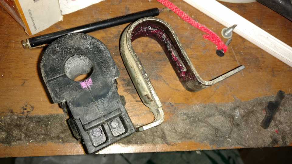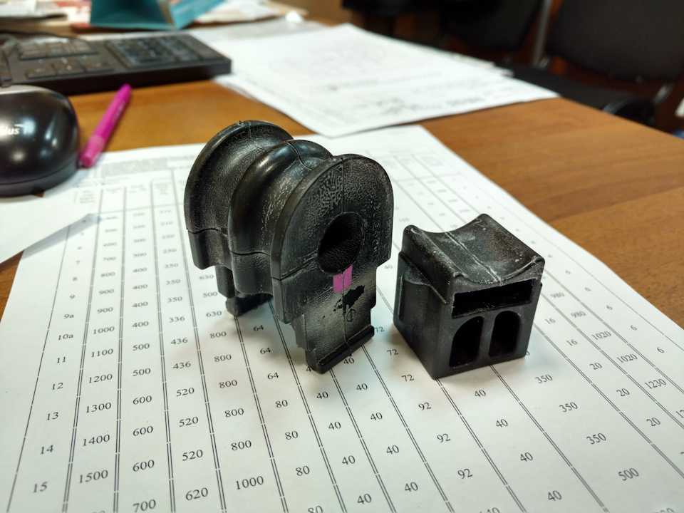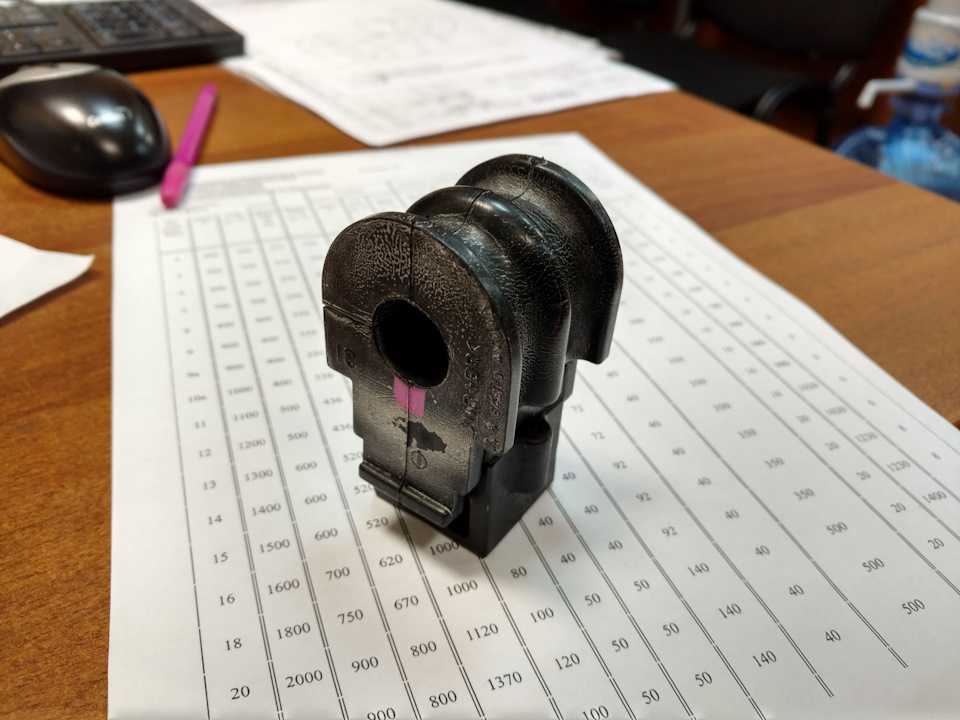 Немного предыстории и симптомов.Когда купил машину, предыдущий владелец любезно предоставил мне больше количество замененных и не подошедших по тем или иным причинам запчастей и прочего барахлишка. Среди всего прочего он показал мне втулку стабилизатора со словами, что она практически не б/у, но снята была по причине сильного скрипа. Как я понял, это проблема неоригинальных резиновых втулок. Моя была фирмы Febi, например.