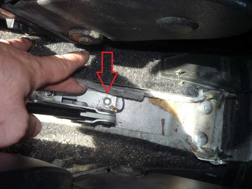 - Обязательно проверьте соединение «минусового» провода насоса с «массой». Часто именно отсутствие «массы» является причиной перебоев в работе топливного насоса. Снимите пластиковую облицовку центральной консоли в районе ручки стояночного тормоза. Под ней находится «минусовой» провод насоса, прикрученный к кузову саморезом. Выкрутите его, зачистите контакты, закрутите обратно и повторите проверку.