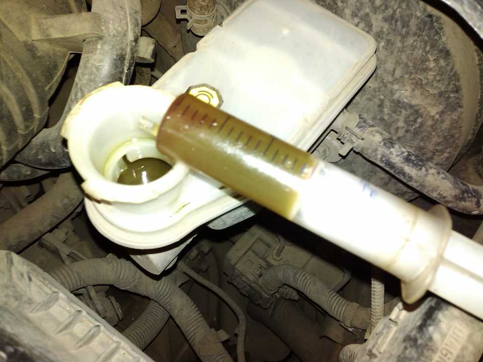 Примечание: При вдавливании поршня следим за уровнем тормозной жидкости в бачке, перетекающая через край жидкость может повредить лакокрасочное покрытие.