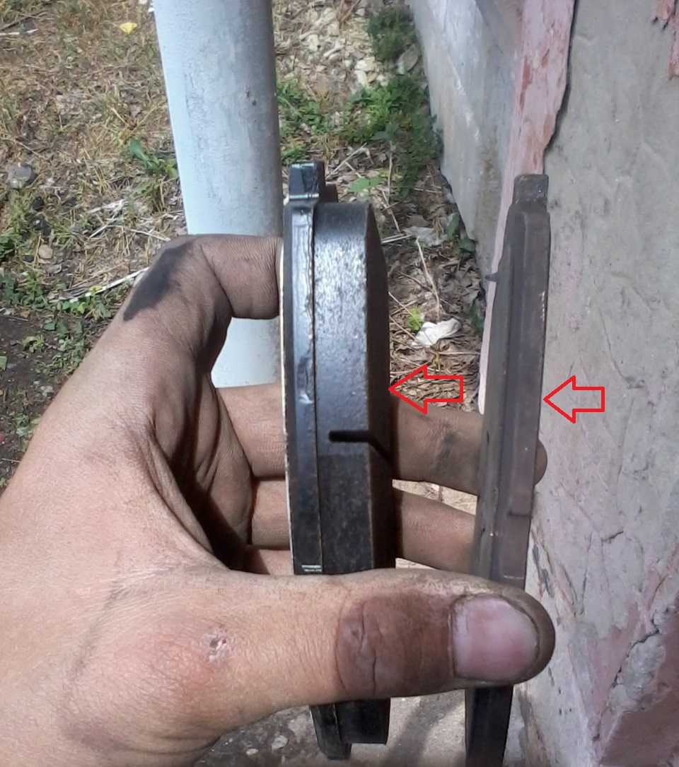 Толщина колодок 11 миллиметров, максимальная толщина износа — это 2 миллиметра.