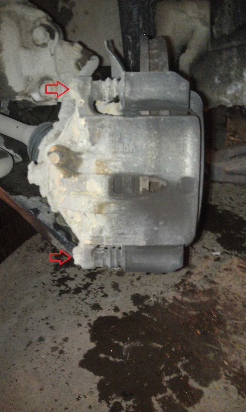 Теперь колодки демонтируем, запомните где располагается датчик износа(он похож на скобку).