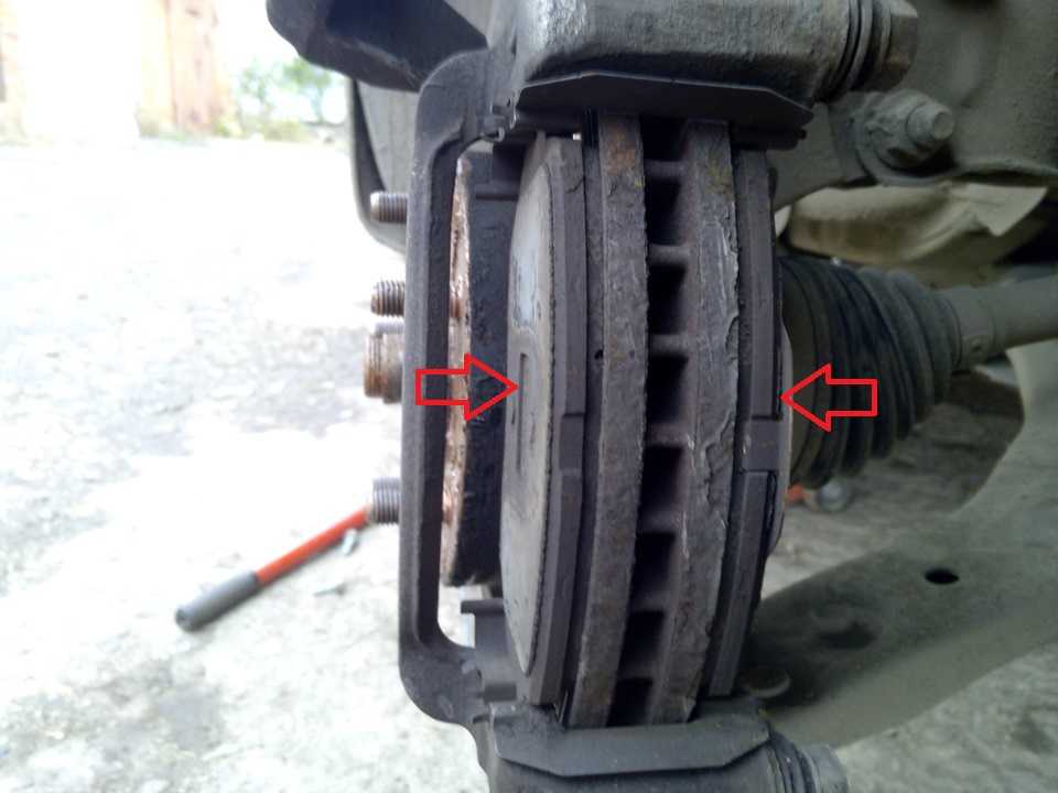 Внимание: — Тормозные колодки ВСЕГДА заменять комплектом – 4 шт. (по две на каждую сторону)