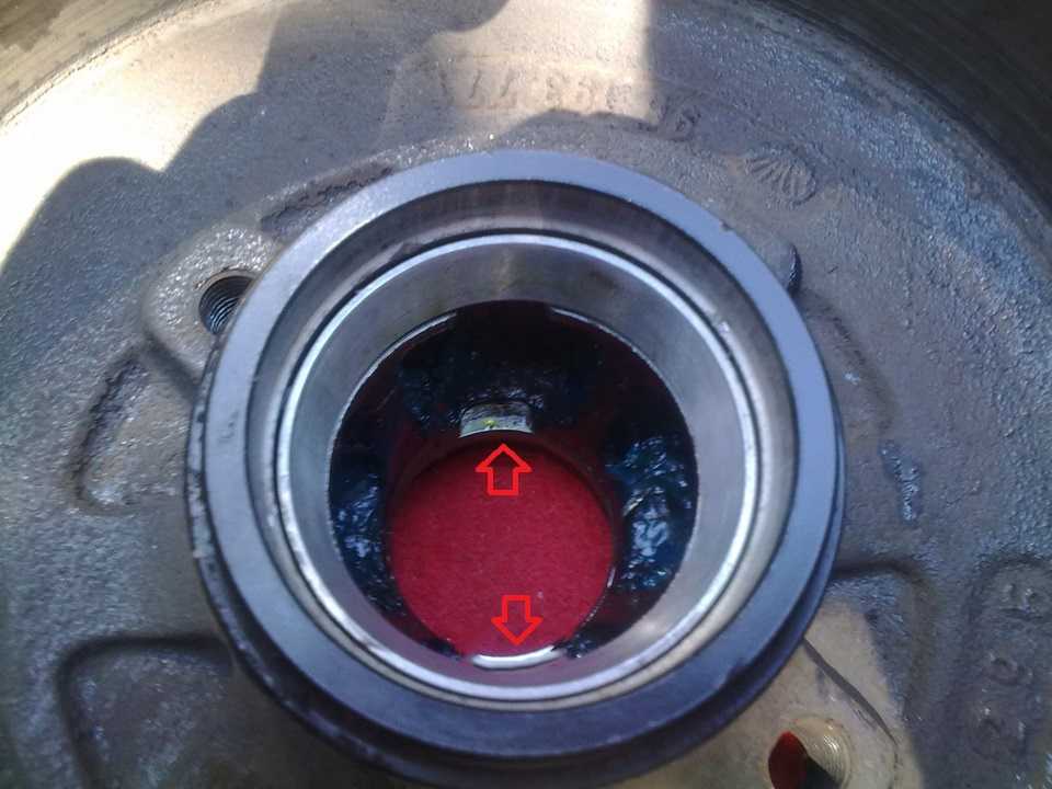 Для выпрессовки подшипников в корпусе ступицы тормозного барабана выполнены два паза.