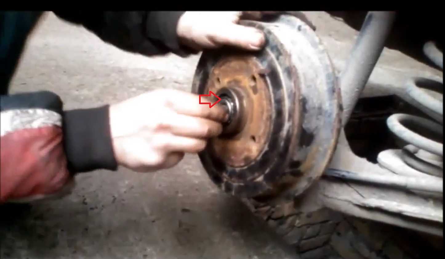 7. Снимите с цапфы упорную шайбу, внутреннее кольцо наружного подшипника и снимите тормозной барабан Шевроле Ланос, вместе с внутренним подшипником ступицы и сальником.
