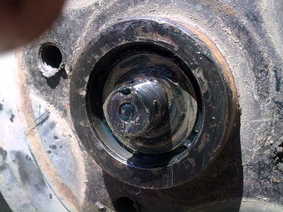 | 6. Отверткой разогните отогнутую лапку шплинта, выпрямите ее… | 7. …и извлеките шплинт из отверстия цапфы. |