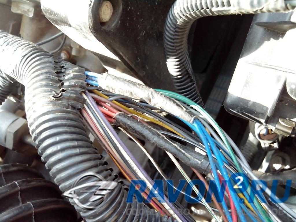 - Основной жгут проводов разматывается. Провода, идущие от датчиков, аккуратно вытягиваются из общего жгута.